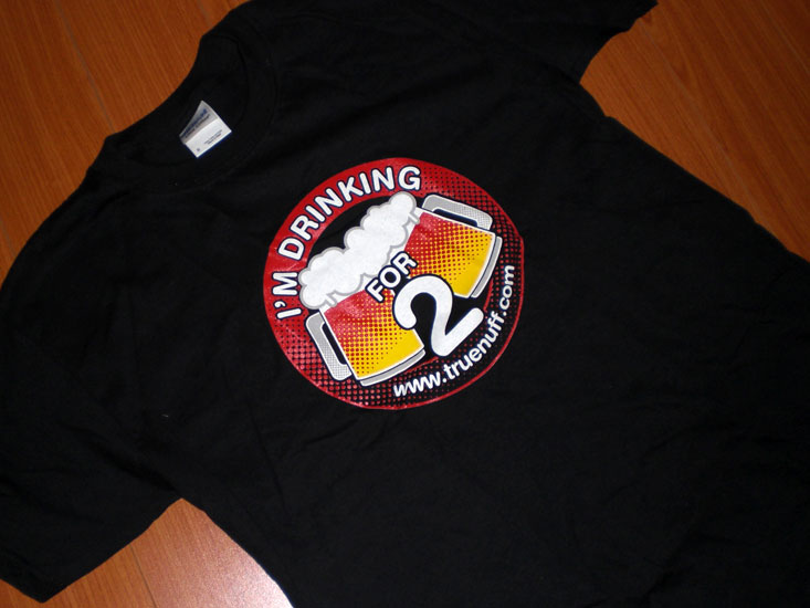 If you're going to double fist your drinks you might as well proudly wear this shirt. Quality silk screened printing on a black 100% cotton shirt. Image is approximately 8" across.